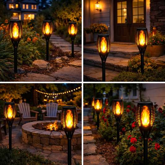 Lampe Solaire Effet Flamme 🔥 – Éclairage Extérieur Sans Électricité